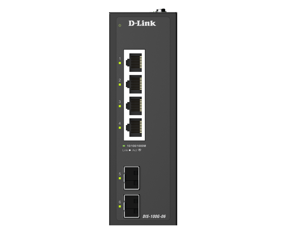 The DIS-100G-06 is built with a rugged, durable design ideal for harsh environments such as outdoor installations, unconditioned factory floors, and remote sites. With a wide operating temperature range of -40°C to 75°C, it ensures stable, and reliable performance even in extreme conditions. Its industrial-grade IP40-rated enclosure protects against dust and solid particles larger than 1mm, while the fanless design and 6kV surge protection on all Ethernet ports help reduce the risk of downtime and enhance long-term reliability.