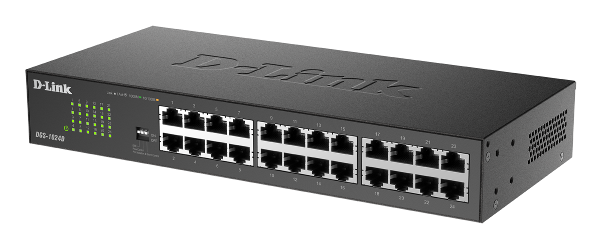 The D-Link DGS-1024D 24-Port Unmanaged Gigabit Switch series offer an economical way for SOHO and Small-to-Medium Businesses (SMB) to take advantage of Gigabit Ethernet speeds while reducing energy consumption and minimising noise output.
