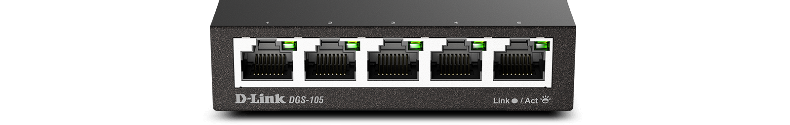 The DGS-105 5-Port Gigabit Unmanaged Desktop Switch offers an economical way for SOHO and small and medium businesses to benefit from the increased bandwidth of Gigabit Ethernet. It provides five Gigabit ports for easy expansion of your network and a quick way to upgrade your network to Gigabit connectivity.
