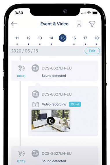 En optant pour un abonnement pour l’enregistrement dans le cloud mydlink™, vous pouvez être serein en sachant que vos enregistrements vidéo sont enregistrés automatiquement sur un serveur dans le cloud et qu’aucun intrus n’aura accès à vos vidéos.