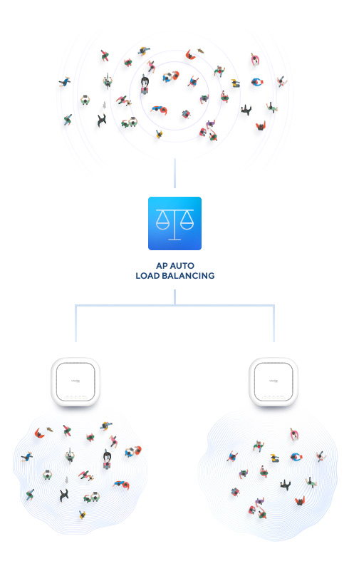 Auto-channel, auto-RF management AP load balance Portail captif |