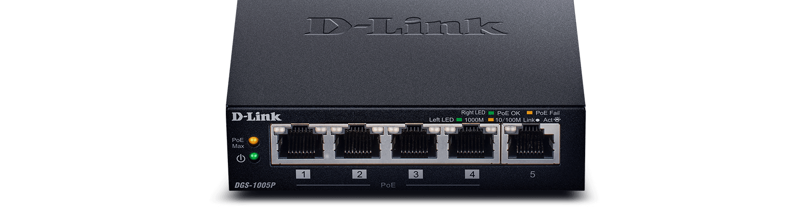 Le DGS-1005P est doté de quatre ports Gigabit Ethernet, compatibles avec les normes IEEE 802.3af et IEEE 802.3at PoE, fournissant jusqu’à 30 watts sur chaque port PoE, ce qui représente un bilan de puissance total de 60 W.