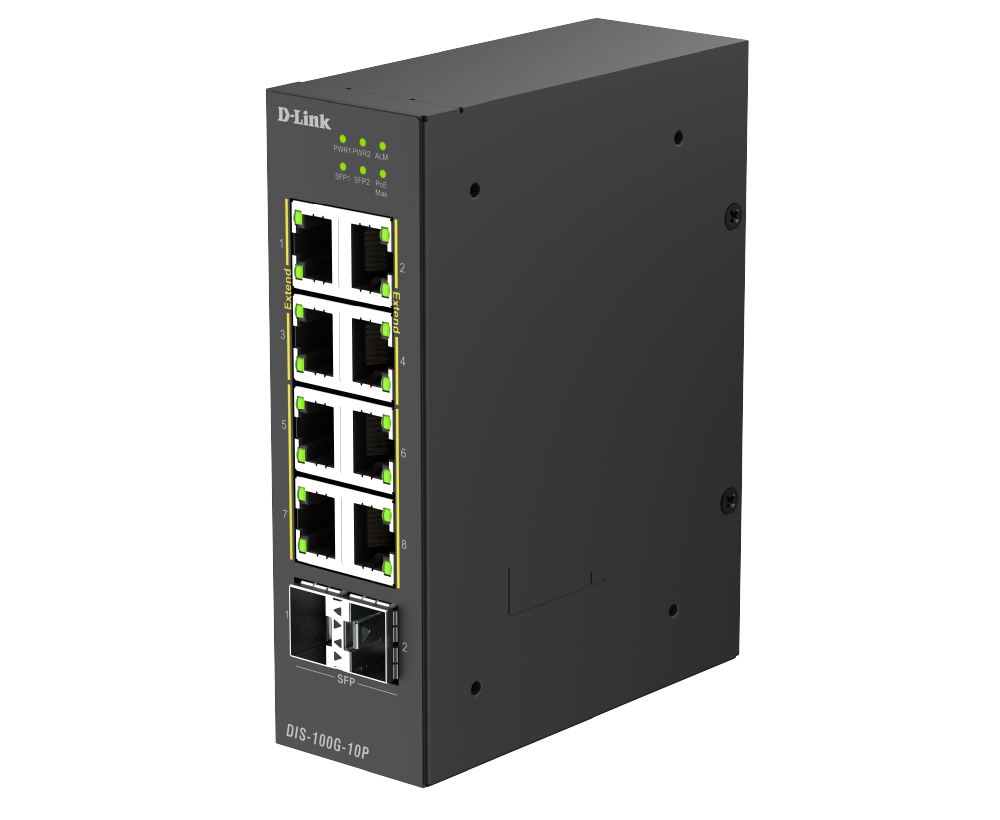 Le DIS-100G-10P est un switch industriel non administrable équipé de huit ports 1G PoE et de deux ports SFP, offrant une simplicité plug-and-play pour le déploiement. Les ports SFP prennent en charge la transmission de données longue distance, éliminant les limitations de distance du câblage Ethernet traditionnel. Avec un fonctionnement fiable et performant, il est parfaitement adapté aux déploiements en périphérie pour des applications telles que la vidéosurveillance HD, les points d’accès sans fil et bien plus encore.