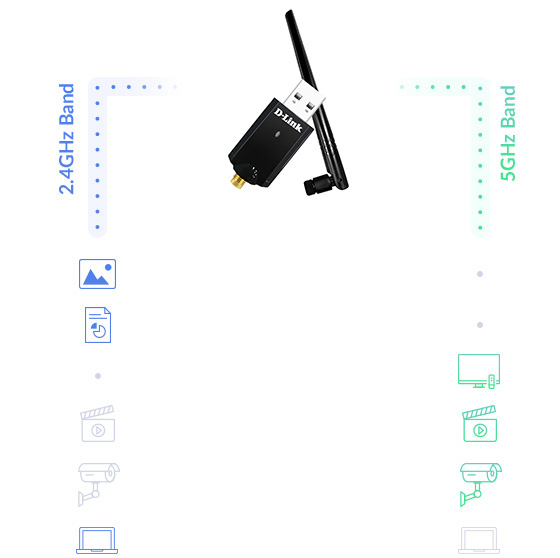 Branchez-vous sur un port USB et connectez-vous à une meilleure connexion Wi-Fi. Profitez d’une vitesse allant jusqu’à 867 Mbit/s sur la bande 5 GHz ou jusqu’à 300 Mbit/s sur la bande 2,4 GHz. Idéal comme mise à niveau Wi-Fi pour les appareils plus anciens qui souhaitent se connecter à des routeurs plus récents ou à des appareils sans contrôleur d’interface réseau sans fil.