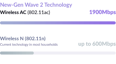 Elk apparaat op het netwerk krijgt een onafhankelijke datastream met snelheden tot wel 1900 Mpbs (600 Mbps op 2,4 GHz + 1300 Mbps op 5 GHz).