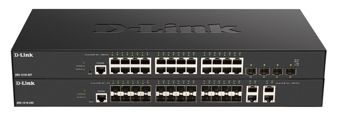 - 25GbE SFP28 ports1 (DXS-1210-28T only)