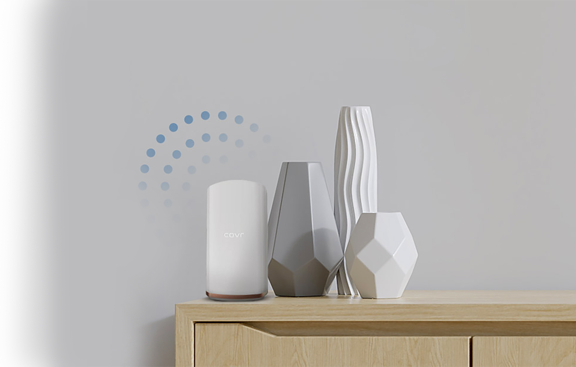 Covr bude krásně ladit s interiérem vašeho domova. Je diskrétní, má jemné podsvícení, které indikuje připojení a žádné vyčnívající antény.