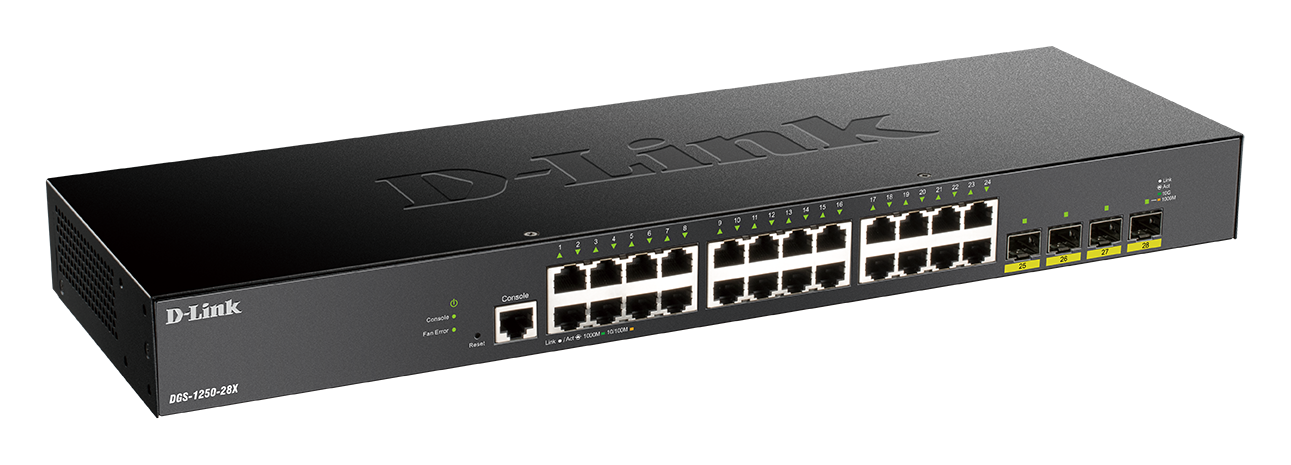 Přepínače řady DGS-1250 lze spravovat také prostřednictvím webového rozhraní nebo pomocí SNMP platformy D-View 7. Každý switch má vyhrazený RJ-45 konzole port. Plnohodnotné CLI rozhraní příkazového řádku poskytuje větší kontrolu, přesnost a rychlost nastavení.