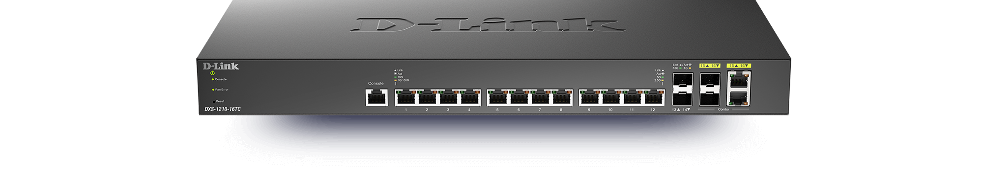 Řada DXS-1210 je osazena RJ-45 a SFP+ porty pro 10G Ethernet připojení pomocí kabelů (CAT6 a vyšší) nebo optických vláken. Model DXS-1210-28T nabízí navíc i 4 porty 10G/25G SFP28 s podporou 10G SFP+ a 25G SFP28 transceiverů. Řada přepínačů DXS-1210 tak poskytuje flexibilní řešení pro připojení serverů a usnadňuje nasazení sítě.