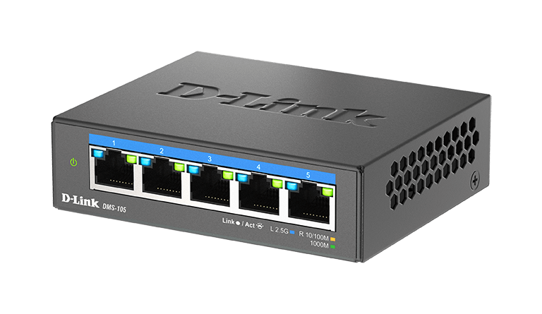 The DMS-105 is a plug-and-play device that requires no configuration to get started. Plug-and-play makes it easy to instantly create a network without any technical knowledge.