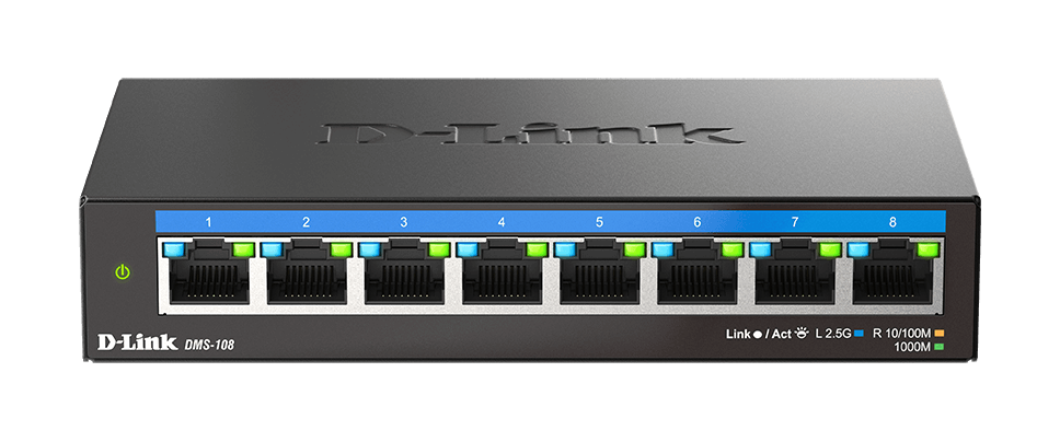 The DMS-108 is a plug-and-play device that requires no configuration to get started. Plug-and-play makes it easy to instantly create a network without any technical knowledge.