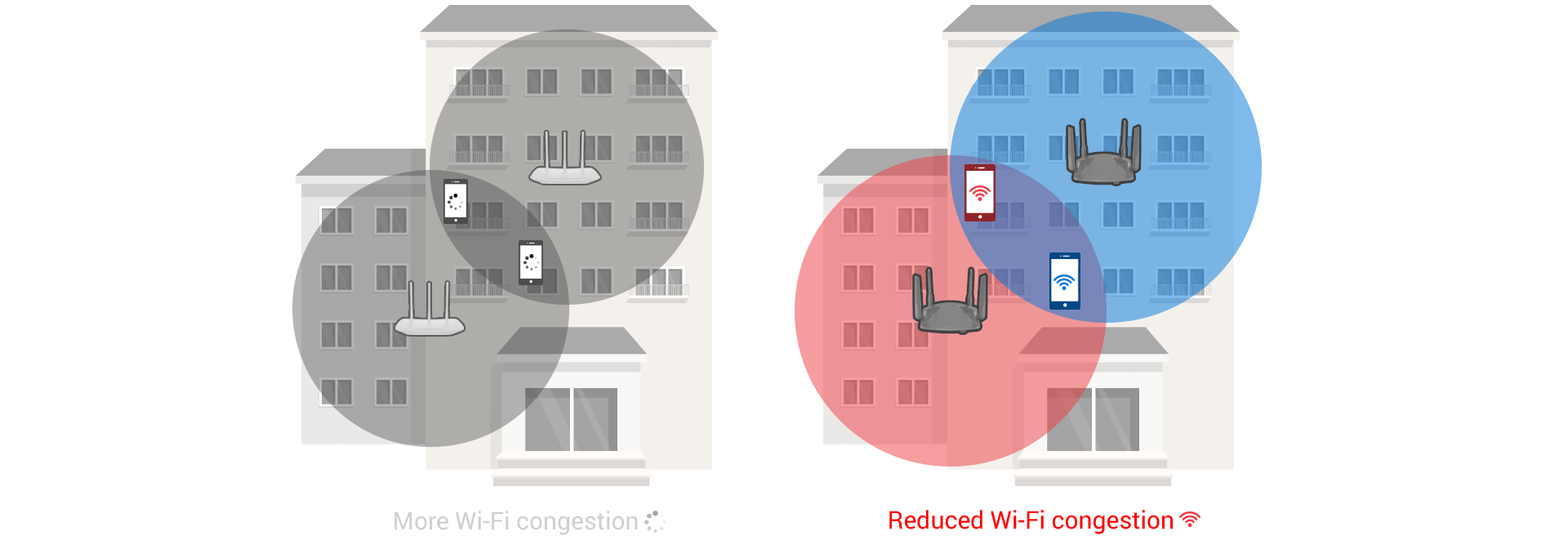 Your neighbors’ Wi-Fi could be interfering with your wireless signals and slowing things down. Wi-Fi 6 puts an end to the Wi-Fi strife with BSS Coloring technology. It makes transmissions more unique by ‘coloring’ them with their own unique code. The result? Devices can decide whether to transmit signals or ignore them, based on their “color”. Get less interference, less Wi-Fi slowdowns and more range.