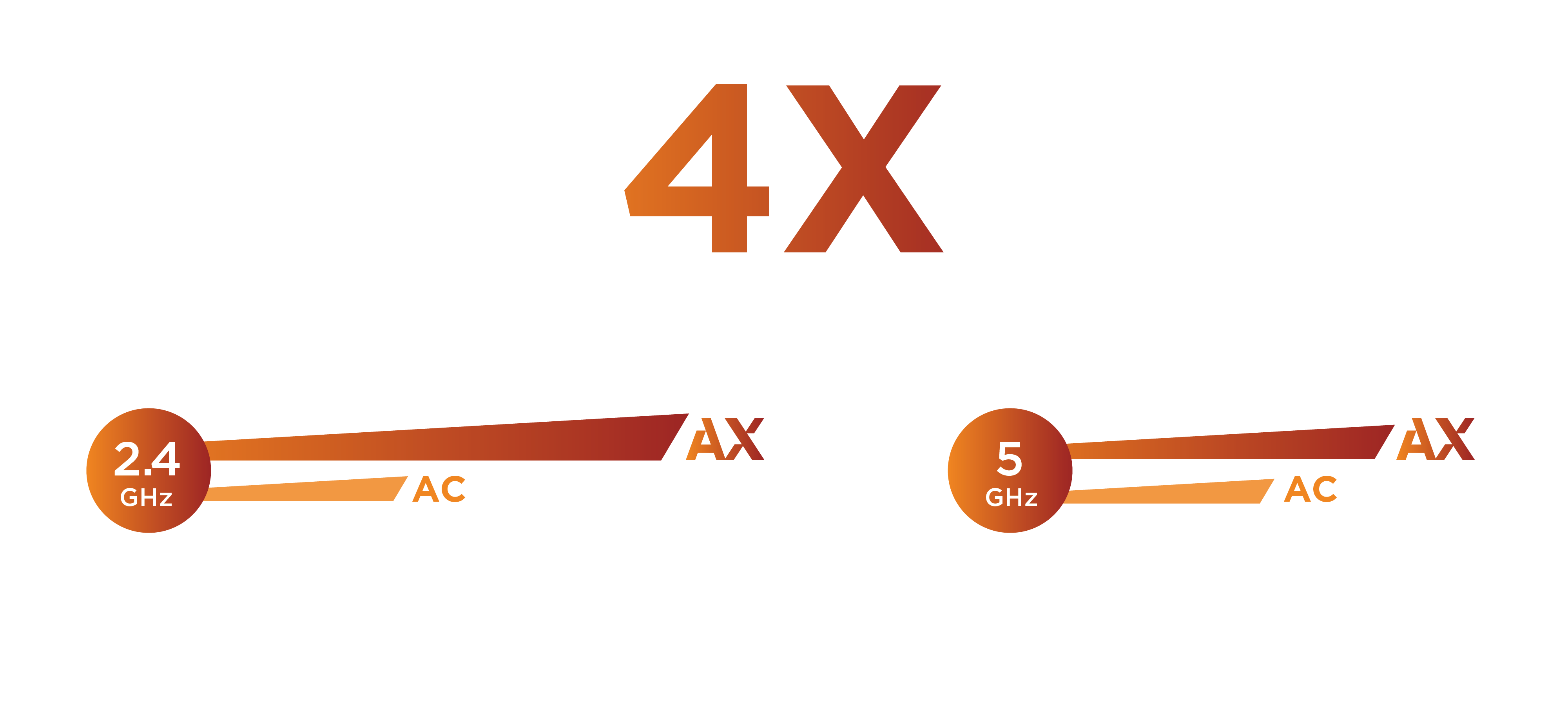Unlike the existing 11ac wireless standard that operates only in the 5 GHz range, Wi-Fi 6 fully utilizes both 2.4 GHz and 5 GHz bands. It also comes with 1024 QAM to boost throughput to devices by up to 25%, and 160 MHz contiguous channel width for even more bandwidth.