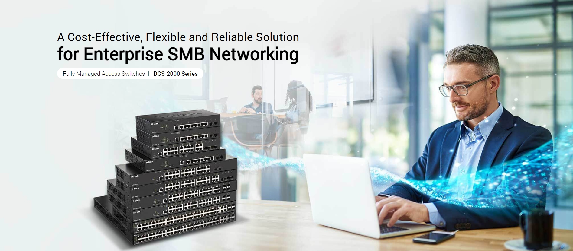 The DGS-2000 Series includes a wide variety of port and media types, including 10/100/1000BASE-T RJ-45 ports, 100/1000 Mbps GbE/SFP combo ports, and 100/1000 Mbps SFP ports. The DGS-2000-10, DGS-2000-26, DGS-2000-10P and DGS-2000-10MP models feature two 100/1000 Mbps SFP ports, while all other DGS-2000 Series models feature two or four GbE/SFP combo ports, allowing you to choose the most suitable media type for your requirements.