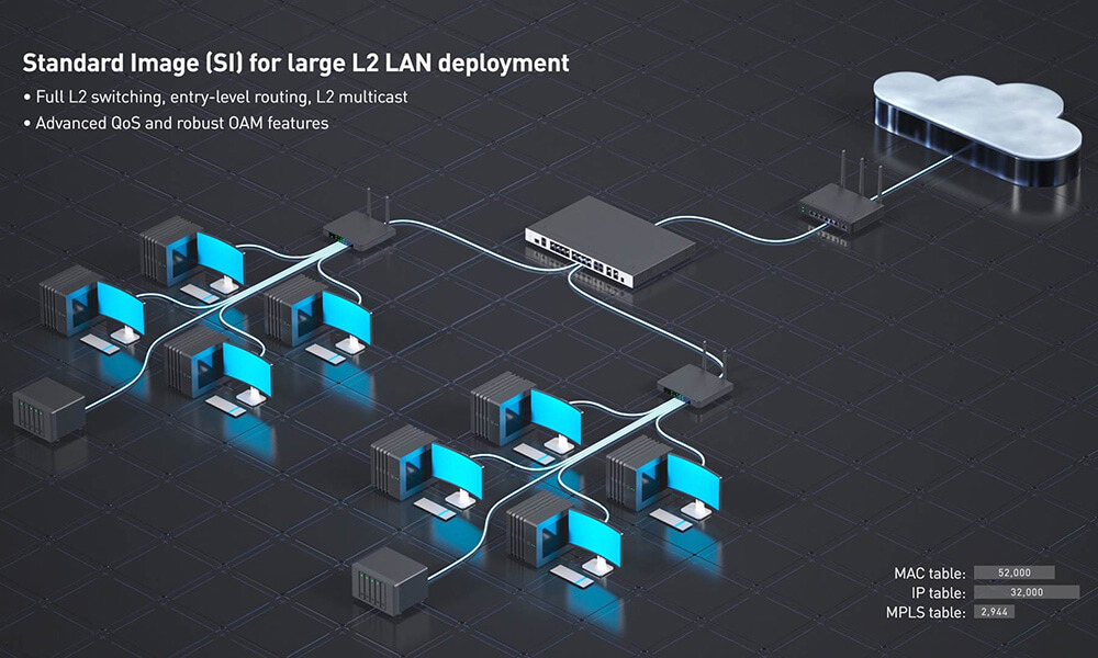 In small to medium businesses, the DGS-3630 Series functions as the core of your network. For large L2 LAN deployments, the Standard Image incorporates comprehensive Layer 2 features, while SRM maximizes the switch IP table.