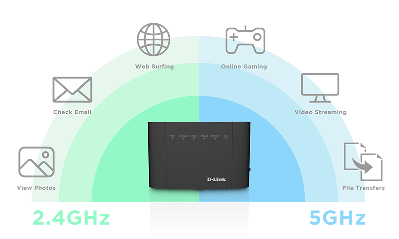 Experience the Internet without limits with the DSL-245GE router, powered by cutting-edge Wireless AC technology. Effortlessly achieve speeds of up to 1.2 Gbps* for all your online activities. Our dual-band capability allows seamless multitasking—browse and connect on the 2.4 GHz band, while streaming and gaming soar on the 5 GHz band. Upgrade your digital life with unparalleled connectivity.