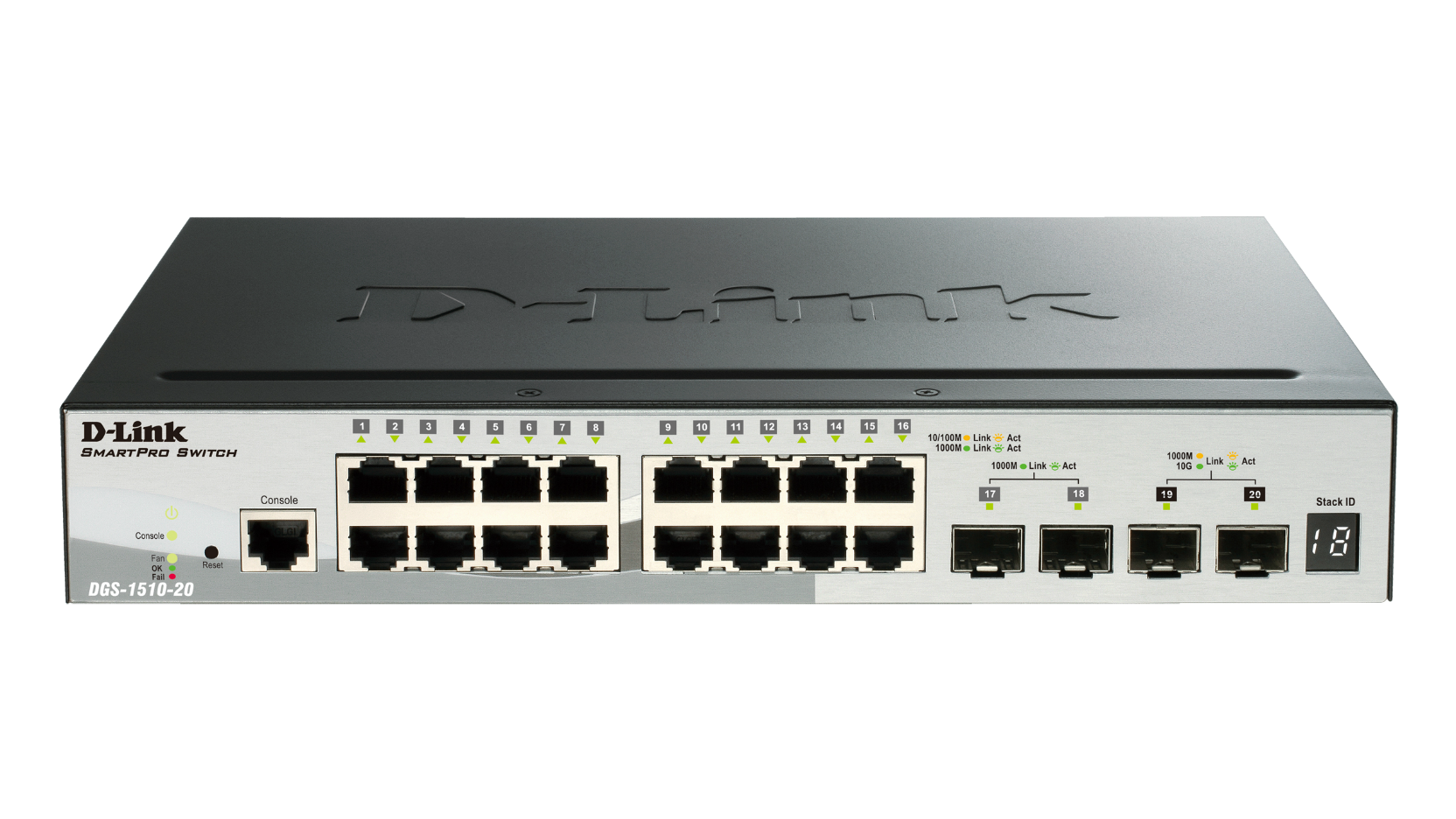 The D-Link DGS-1510 Series is the latest generation of Smart Managed switches with 10G SFP+ fibre ports for physical stacking or uplinks. The combination of high bandwidth connections, an Industry Standard CLI, and PoE options make the DGS-1510 Series ideal for Small-Medium Enterprise environments.