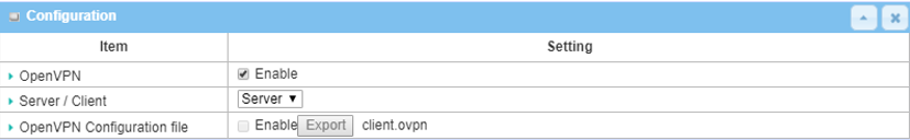OpenVPN Configuration File Check the Enable box to activate the configuration export for OpenVPN client