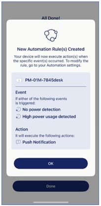 Step 12: New automation rules have been created automatically. Please tap OK to continue.