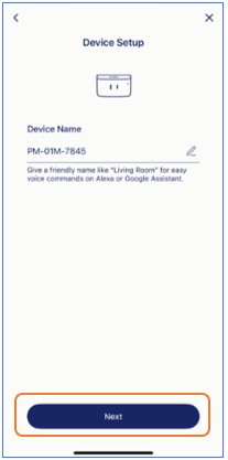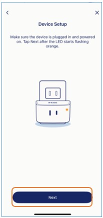 Step 6: Make sure the device is plugged in and powered on. Tap Next after the LED starts flashing orange.