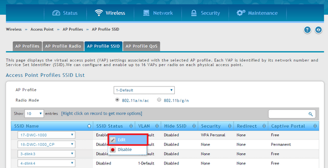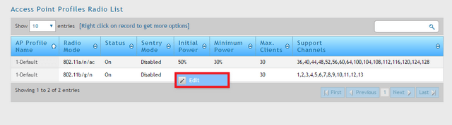 Right-click over 1-Default 802.11a/n/ac (Radio 1) then click “Edit”