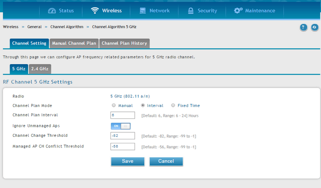 Wireless > General > Channel Algorithm > Channel Algorithm 5 GHz