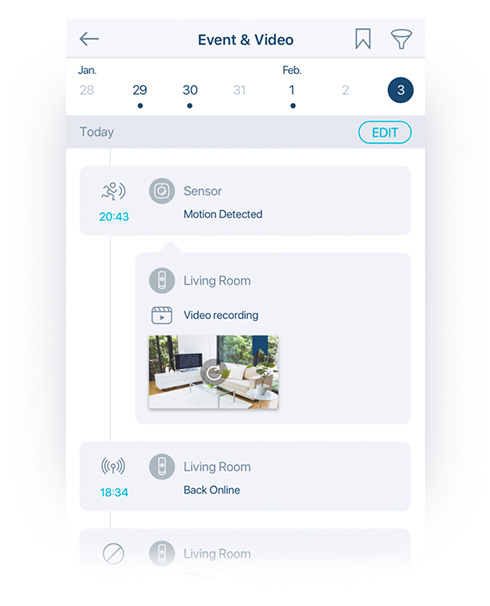 Rich push notifications allow you to see more of what's happening, and gives you the option to choose actions like see the Live View, or call a neighbour, all without unlocking your phone and logging into the mydlink™ app.