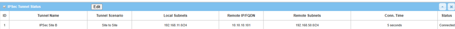 - IPsec Tunnel List: This section is for IPsec Site-to-Site.