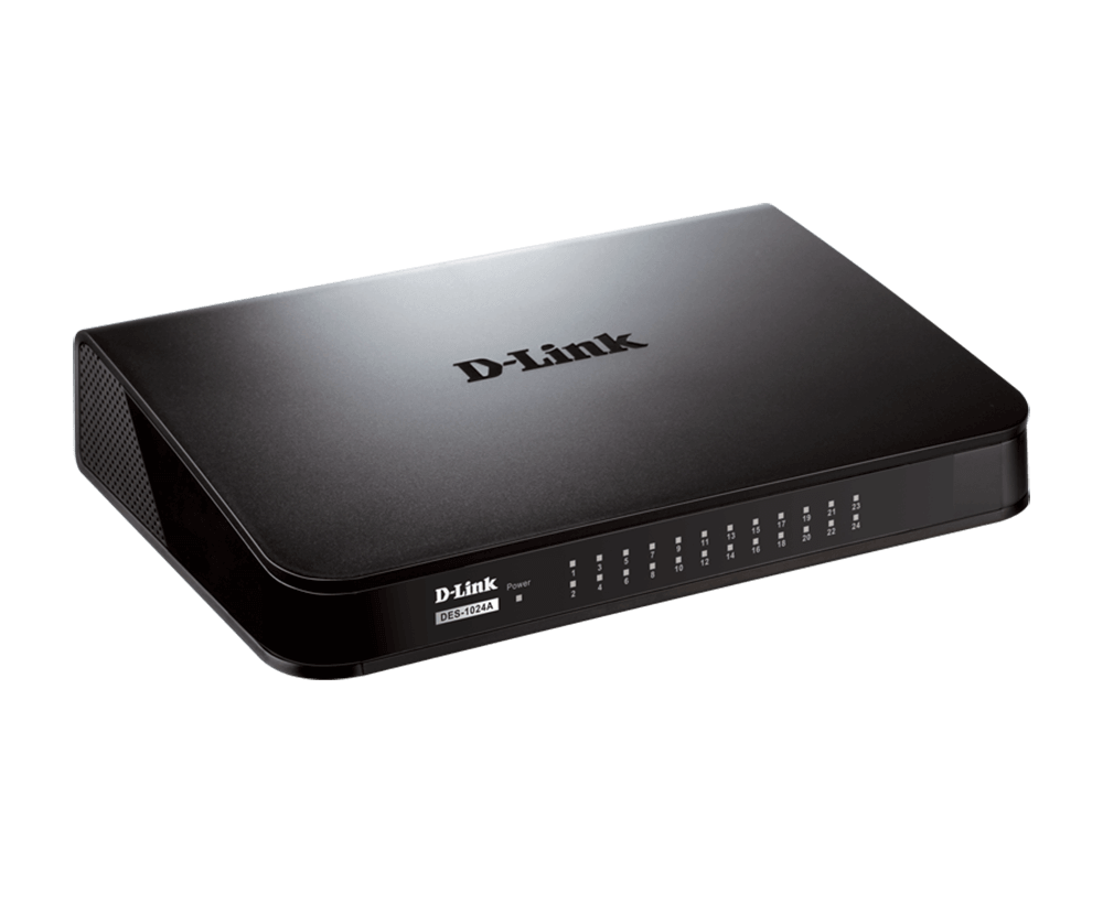 The DES-1024A 24-Port 10/100 Switch offers an economical way for SOHO and small to medium businesses (SMB) to benefit from fast speed networking. It provides sixteen ports for easy expansion of your network and a quick way to upgrade your network to Fast Ethernet connectivity.