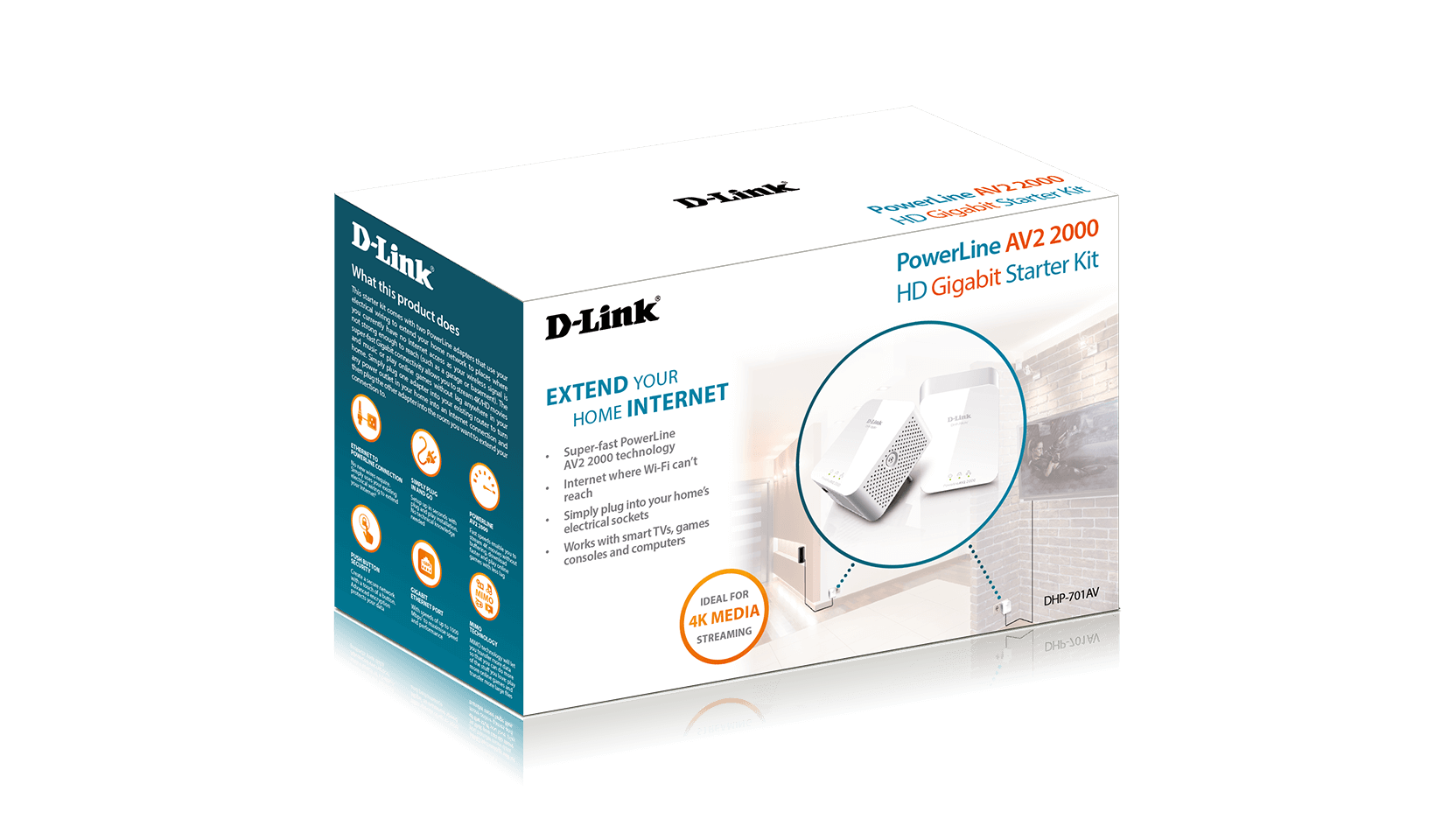 The DHP-701AV PowerLine AV2 2000 HD Gigabit Starter Kit uses your home’s existing electrical wiring to create a network or extend your existing network1.