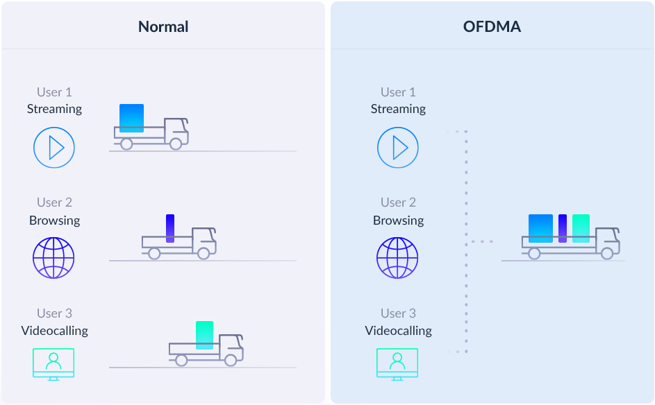 Small data packets destined for multiple devices are transmitted together and never have to queue up again. Perfect for bandwidth-hungry devices battling for bandwidth.