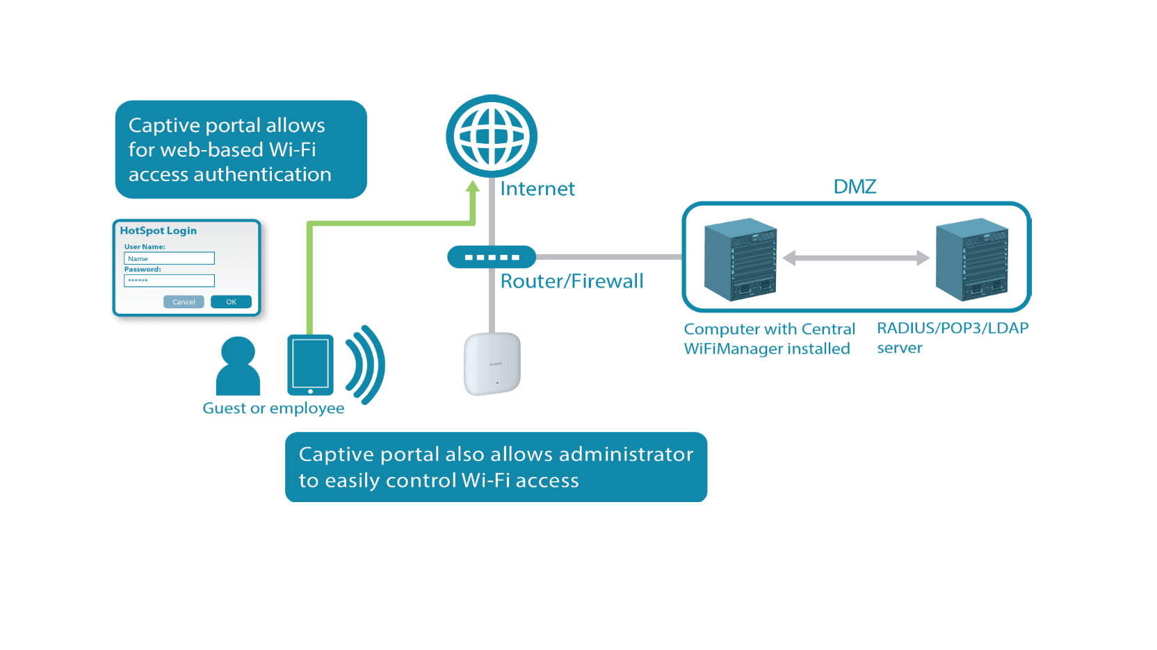 Track and control user access to your network including guests. A simple customisable Guest Portal provides authentication and Hotspot capabilities enabling Central WifiManager to run as an external portal server. Create dedicated user accounts or wireless access voucher-codes to commercialise your wireless investment. Using Central Wifi Manager’s enterprise-level wireless management features to manage bandwidth.