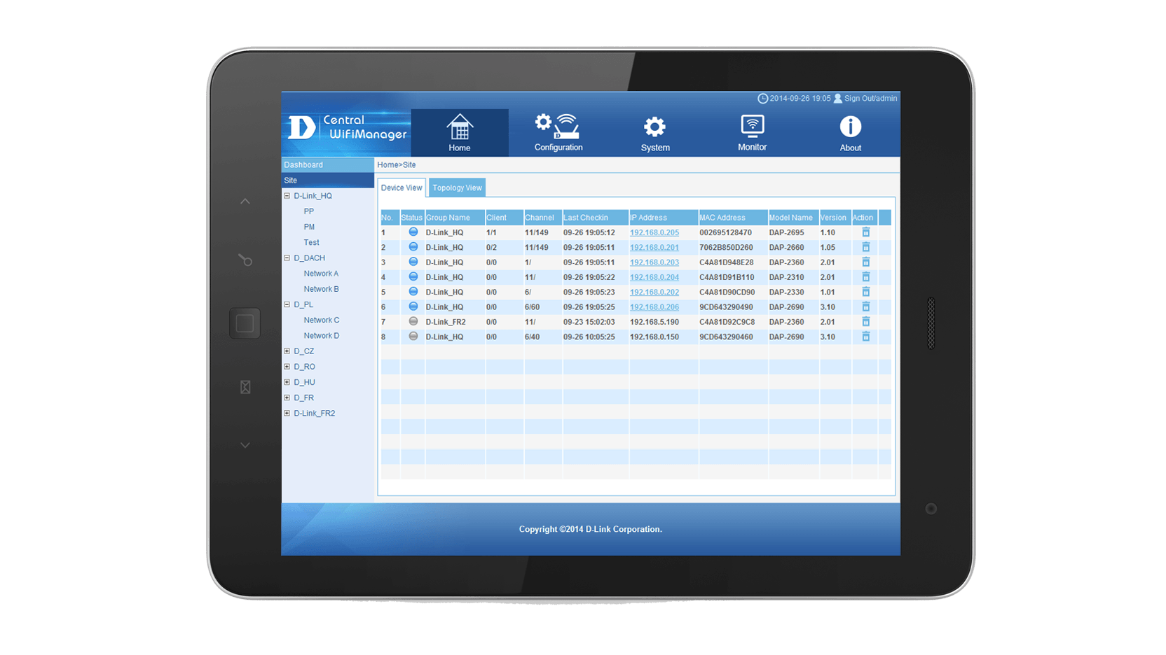 D-Link’s free Central WifiManager is a cloud enabled wireless Access Point management tool, designed to allow you to create and manage multi-site, multi-tenancy wireless networks.