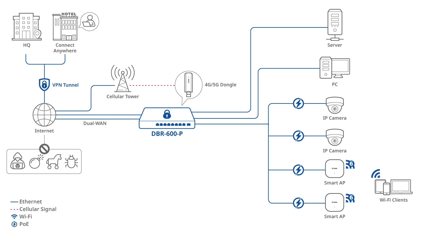 Discover the DBR-600-P business router's capabilities through our detailed topology diagram.