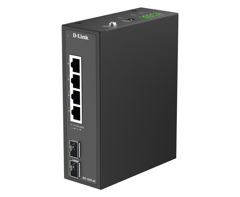 The DIS-100G-06 features two SFP ports that enable flexible, long-distance fiber connections, perfect for extending your network across remote sites or between buildings. Fiber optic cabling goes beyond the distance limitations of traditional Ethernet, offering high bandwidth and strong resistance to interference. This ensures stable, high-performance transmission in industrial environments where reliability is essential.