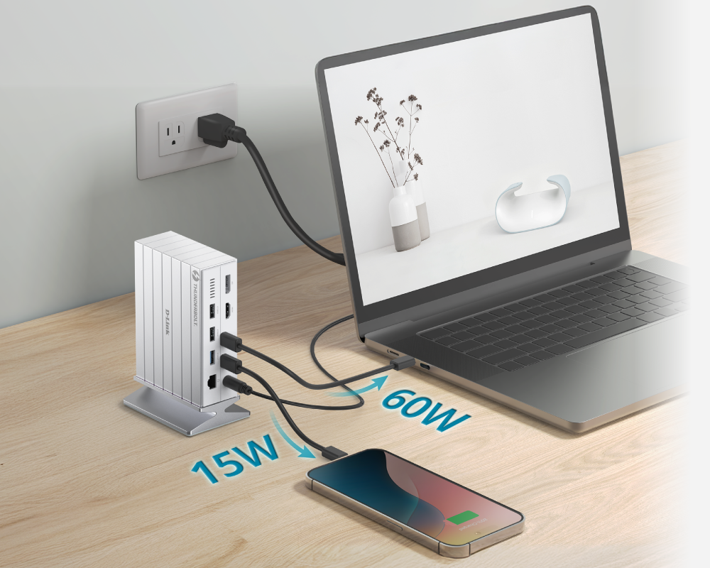 With one Thunderbolt 4 connection, your laptop receives 60W fast charging, plus 15W extra for phones, tablets, or accessories, powering all your devices together with ease.