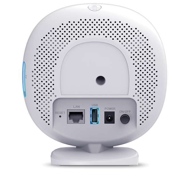The hub also has a microSD card slot and USB port for connecting external hard drives and storing videos locally.