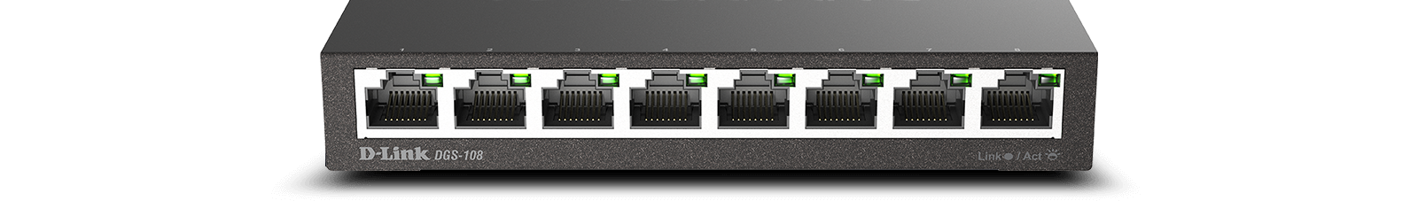 The DGS-108 8-Port Gigabit Unmanaged Desktop Switch offers an economical way for SOHO and small and medium businesses to benefit from the increased bandwidth of Gigabit Ethernet. It provides eight Gigabit ports for easy expansion of your network and a quick way to upgrade your network to Gigabit connectivity.