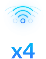 4 high-gain external antennas, and built-in power amplifiers work together to generate a broader and more reliable Wi-Fi signal to reach more rooms and provide coverage throughout your home2.