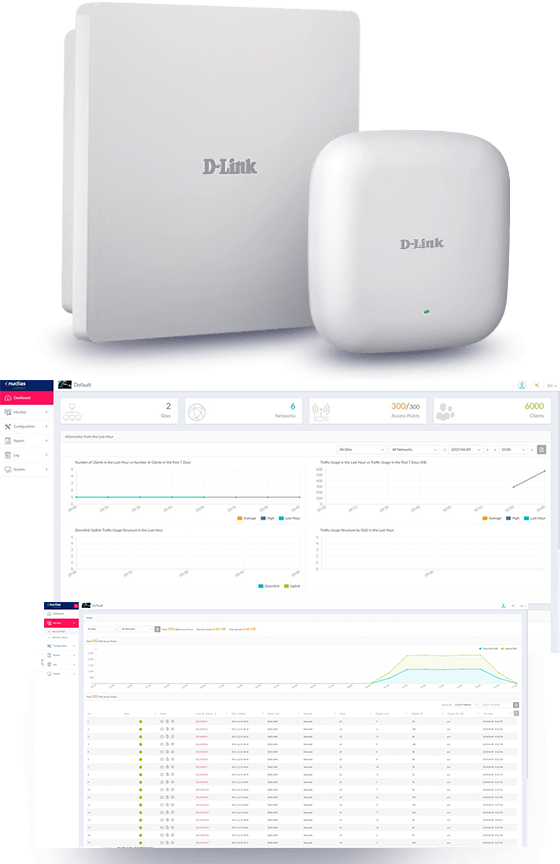 Nuclias Connect gives you the financial and technical flexibility to expand from a small network to a larger one of up to 1,500 APs/switches while retaining a robust and centralised management system.