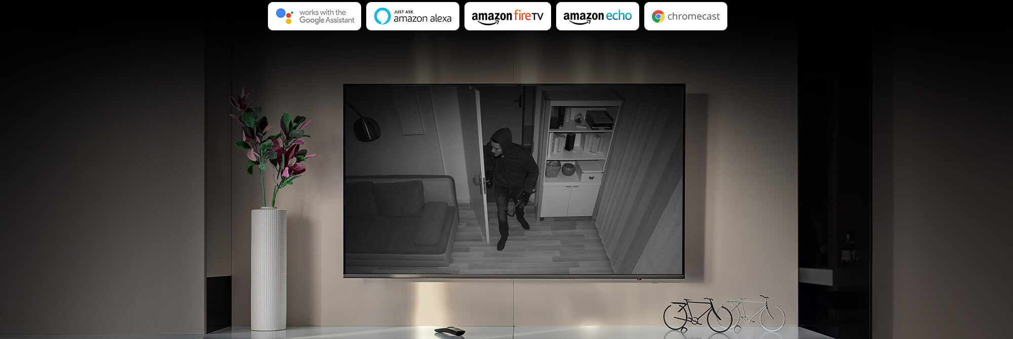 With full compatibility with Amazon Alexa and Google Assistant, you can watch live video streaming on Amazon Fire TV, Echo Show, Echo Spot or on Google Chromecast.