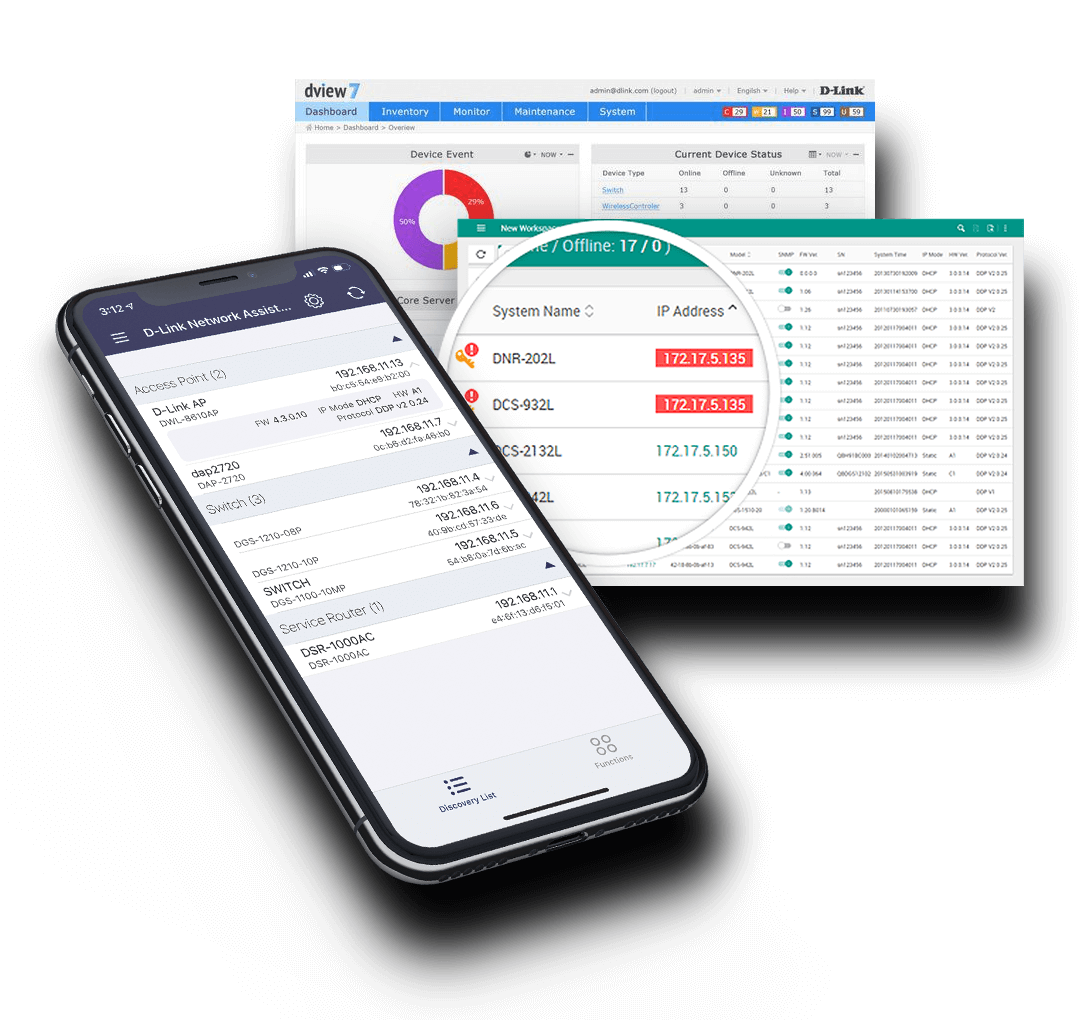D-Link Network Assistant (DNA) is our latest software for admins to easily discover, configure and control their network down to the port level. We also provide an additional legacy software that authorises them to configure multiple large wired/wireless device networks with D-View 7 for centralised management to reduce costs and maintenance.