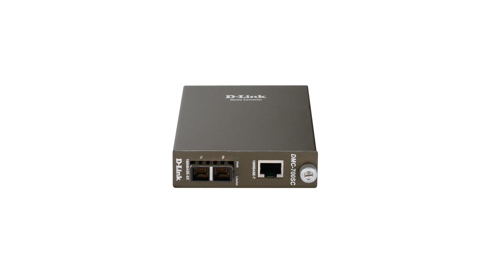 The DMC-700SC by D-Link® is a media converter designed to connect 1000BASE-SX fiber to 1000Base-T copper media or vice versa. Based on the IEEE 802.3ab and 802.3z standards, the DMC-700SC is designed for use with multi-mode fiber cable utilising the SC-Type connector. The DMC-700SC supports shortwave (SX) laser specifications at a full wire-speed forwarding rate. Other features of this module include the ability to be used as a standalone device (no chassis required), Auto MDI/MDI-X for TX port, Auto negotiation of duplex mode on TX port, and front panel status LEDs. The DMC-700SC will transmit at extended fiber optic distances utilising multimode fiber up to 550 meters.