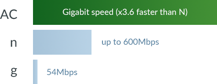 - 802.11ac Wave 2, up to 1.3 Gbps* speeds