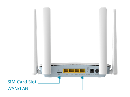 3 x Fast Ethernet LAN ports 1 x WPS button 1 x power connector 1 x Fast Ethernet WAN/LAN port 1 x reset button 1 x Power button 1 x SIM Card slot (Nano SIM: 4FF) |