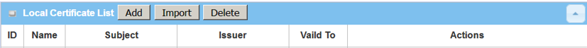 Select TLS from the drop-down list CA Cert: Select Root CA certificate from drop-down menu Server Cert: Select Local Server certificate from drop-down menu |