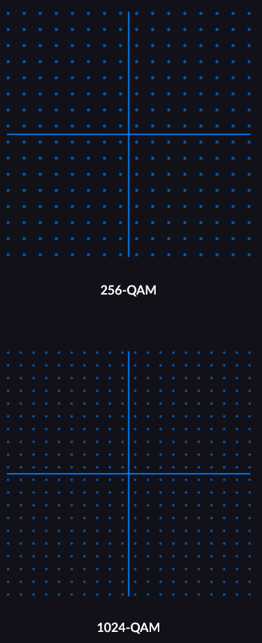 Utilise Wi-Fi 6's 1024 quadrature amplitude modulation (1024 QAM) to facilitate massive amounts of data transfers, which is a big improvement from the previous Wi-Fi 5 modulation scheme (256 QAM). It adds another 2 bits of data per symbol transmitted (total of 10 bits), enabling Wi-Fi 6 to ensure high quality of service (QoS) for high-traffic venues such as sport arenas, train stations, and convention centers. That’s an impressive 25% increase in data rate throughput.