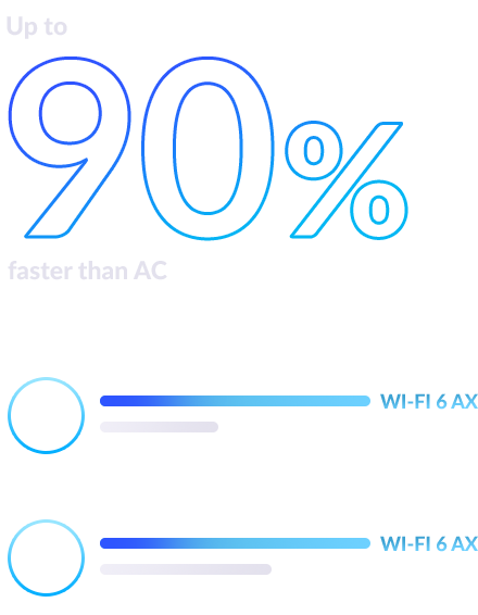 Wi-Fi 6 dual-band (2.4 GHz + 5 GHz) technology helps you overcome the limitations of single while maximising each band’s merits. Used in combination with the 1024-QAM, it increases maximum physical (PHY) data transfer speeds to unprecedented levels.