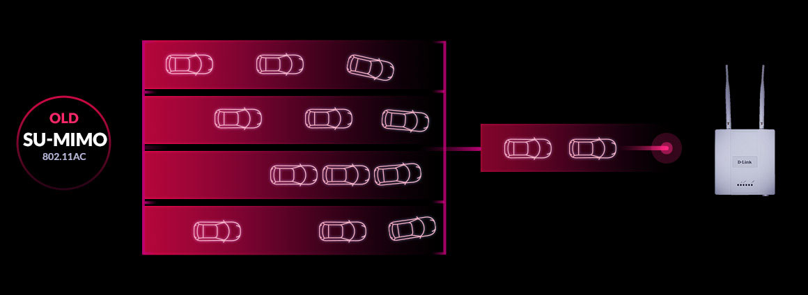Earlier versions of Wi-Fi used SU-MIMO* (Single User Multiple Input Multiple Output), which only allowed communication with multiple devices in consecutive order, or one at a time.