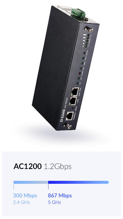 The DIS-2650AP delivers reliable, high-speed wireless AC Wave 2 performance with maximum combined wireless signal rates of up to 1200Mbps1, with x2 Gigabit LAN ports for high-capacity backhaul to the wired network.